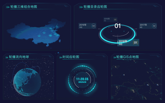 • 我們基于webgl等技術(shù)開發(fā)了大屏圖表插件,通過簡單拖拽即可實現(xiàn)自動播放、3D動畫特效等多種效果;圖表類型包括輪播三維組合地圖、輪播gis點地圖、流向地球、時間齒輪和目錄齒輪等,科技感十足,讓大屏展示效果更加炫酷